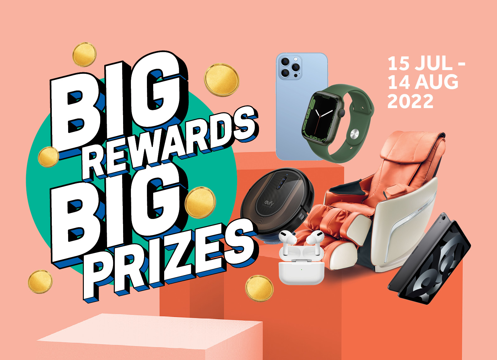 Win Big at Century Square, Tampines 1, Waterway Point & White Sands from 15 Jul to 14 Aug 2022!