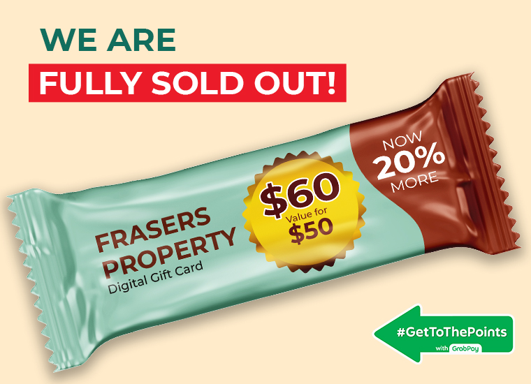 Get $48 in Frasers Property Digital Gift Cards on your first three orders with GrabPay!